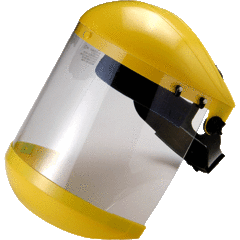 Mesh visor protect from large low speed flying particles such as forestry industry.