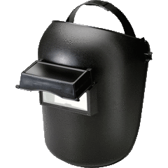 Welding helmet in PP or Nylon material designed for for use in either MIG, TIG or Plasma arc cutting job.